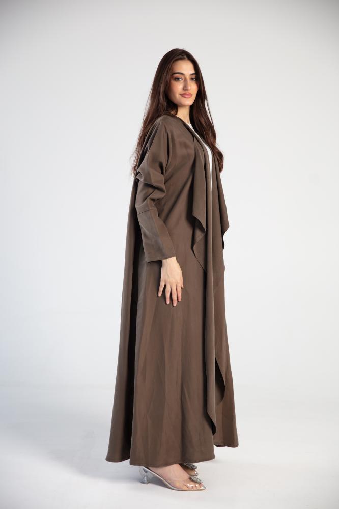 - تصميم أنيق: عباية بني غامق مصممة على الطراز العصري بقصة مفتوحة وطيات أمامية وانسيابية تمنحك إطلالة فريدة تواكب الموضة.