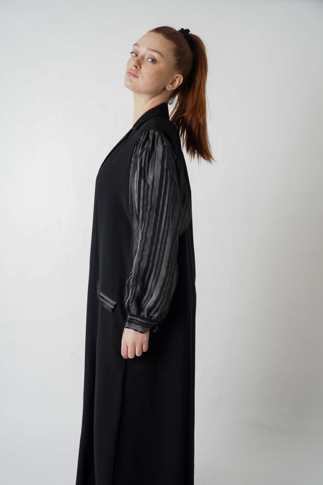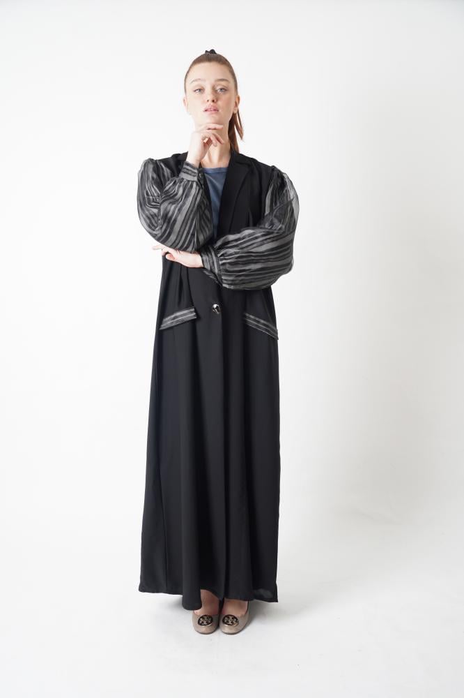 • أكمام مميزة: تصميم الأكمام مميز للغاية، فيأتي بطبقتين من القماش الذي يُبرز الفخامة في كل حركة، وتلك التفاصيل تخلق إطلالة مميزة وتضفي على العباءة لمسة من الرقي والتفرد.