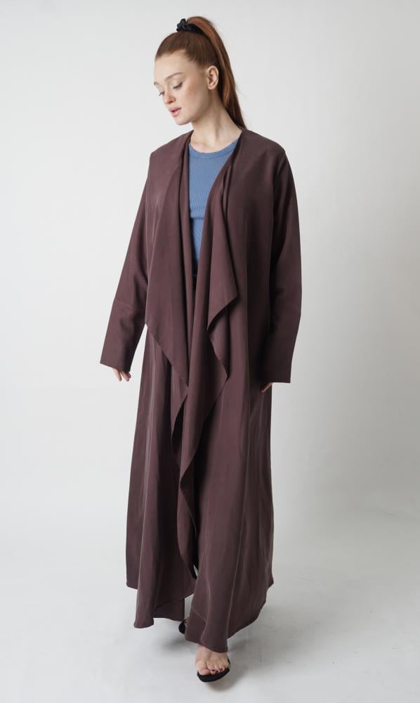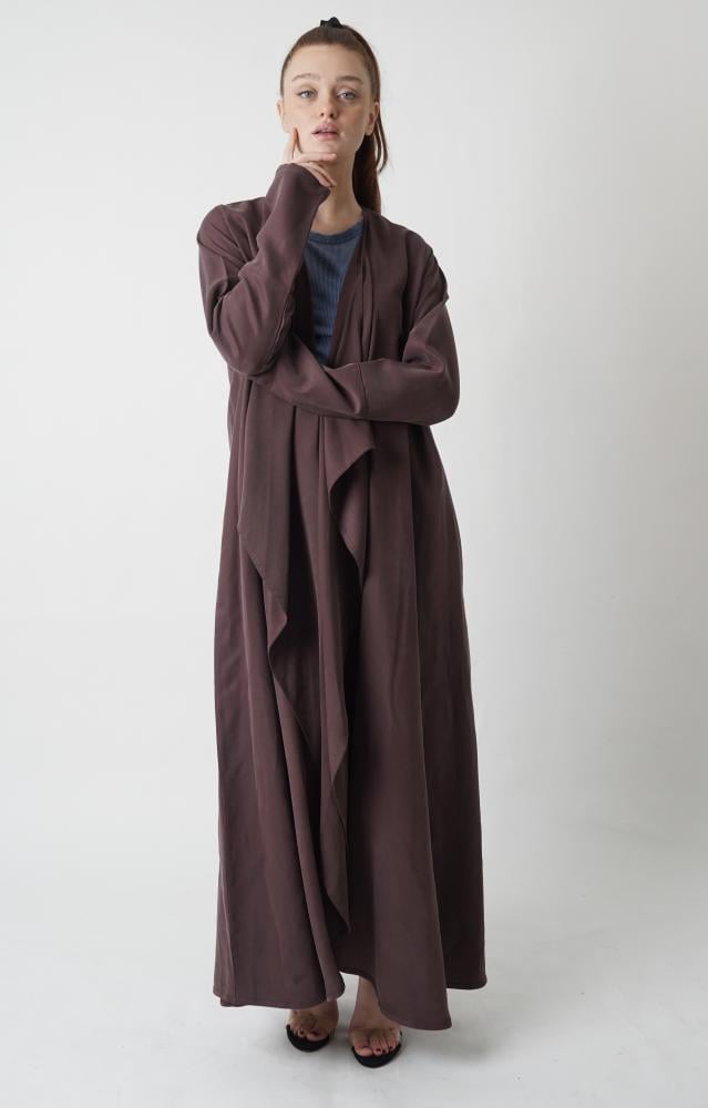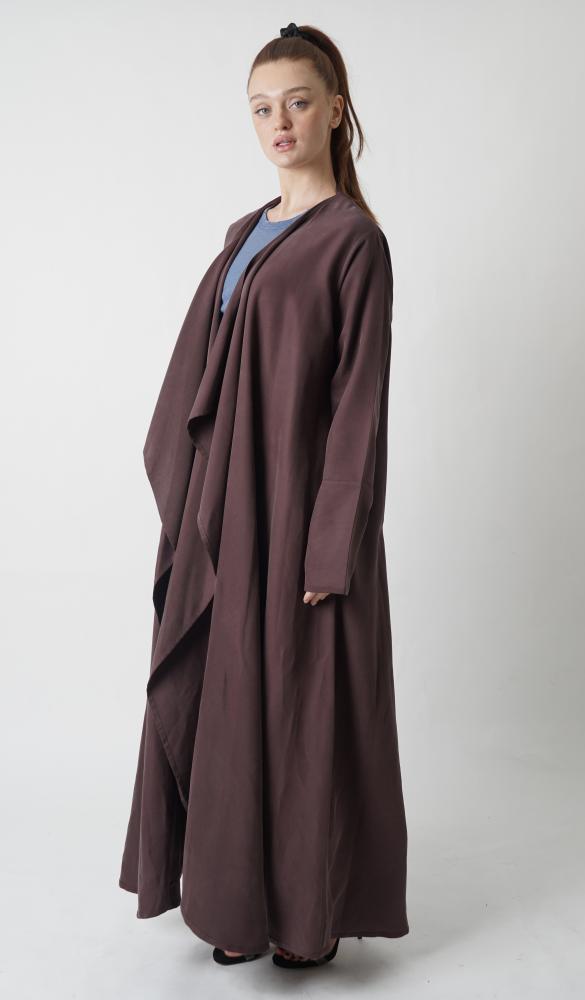 - تصميم عصري: نُقدم عباية موف غامق بتصميم عصري جميل وقصّة مريحة تمنحكِ حرية الحركة، وتناسب أسلوب الحياة النشط دون التضحية بالأناقة.