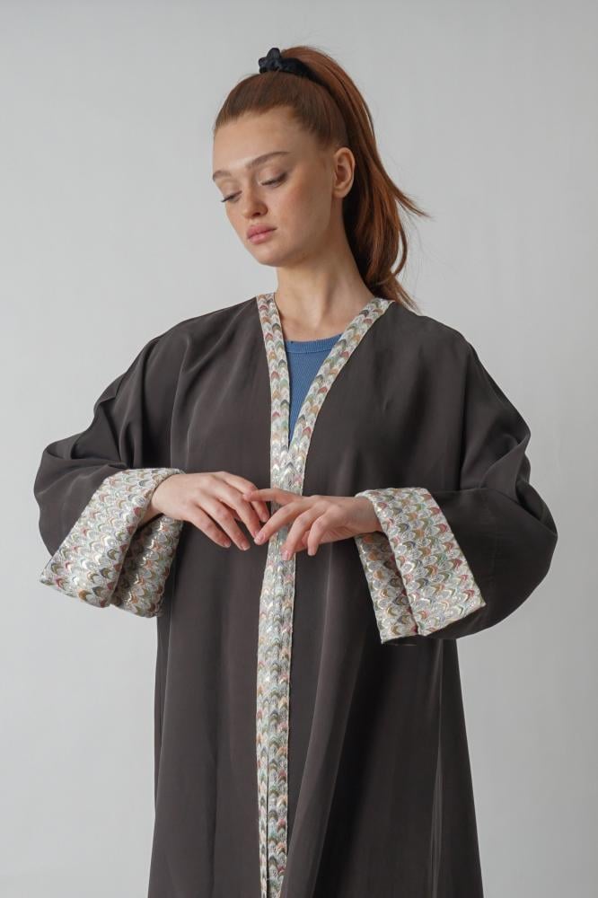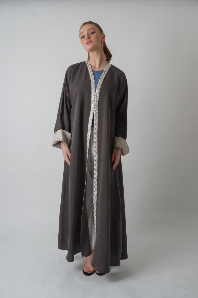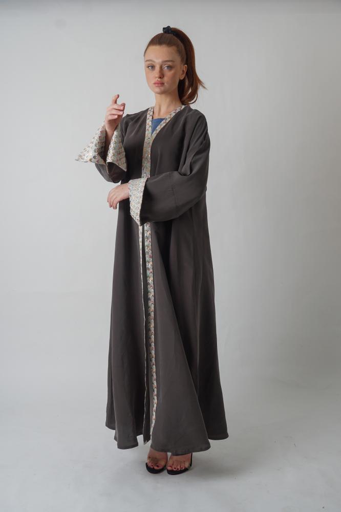 - لون راقي: صممت العباءة باللون الرمادي والتفاصيل الدقيقة المتناغمة مع بعضها، وتمنحكِ بالنهاية إطلالة أنثوية راقية.