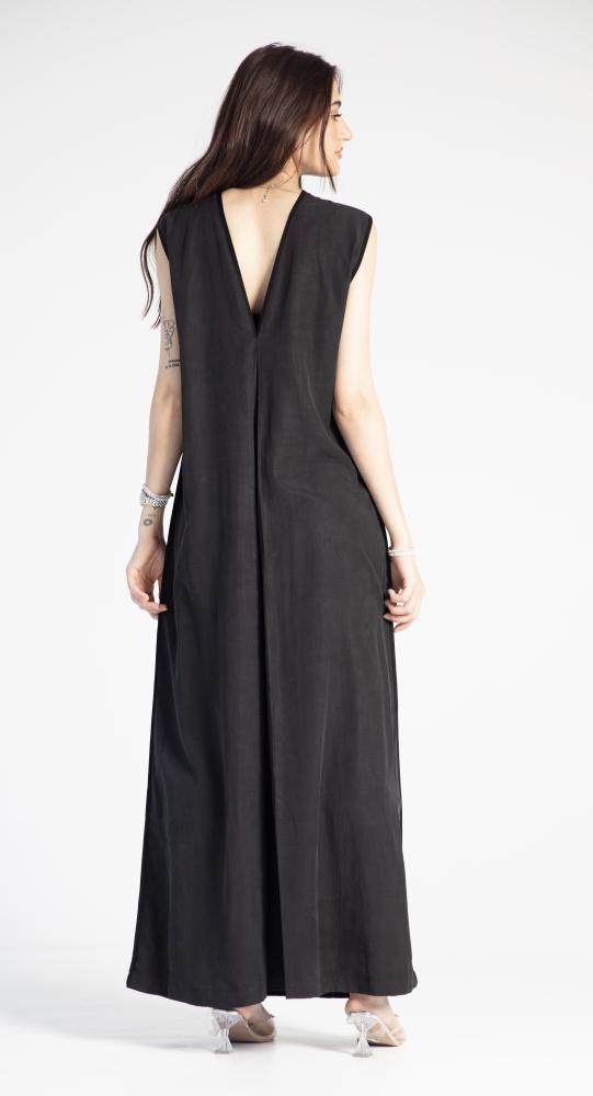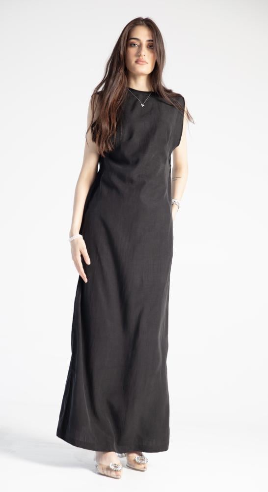 • الأكمام: بدون أكمام (sleeveless)، مع قصة تغطي الكتف بشكل واسع نسبياً.